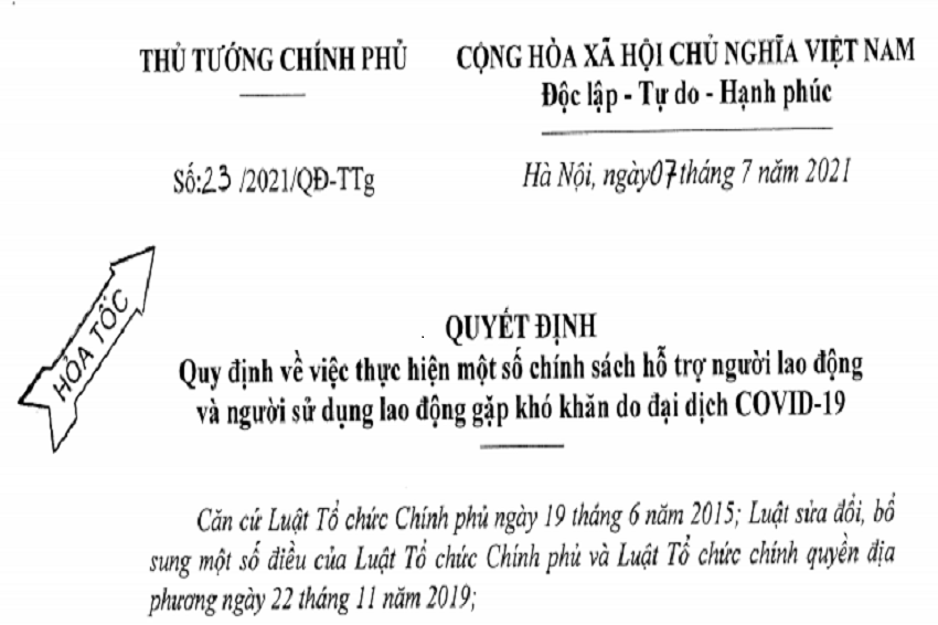 Ngày 07/7/2021, Thủ tướng Chính phủ đã ban hành Quyết định 23/2021/QĐ-TTg về thực hiện một số chính sách hỗ trợ